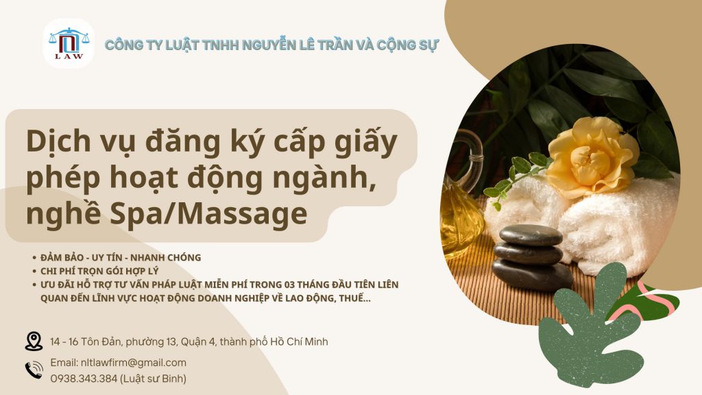 Trên đây là nội dung tư vấn về điều kiện và thủ tục hoạt động ngành nghề kinh doanh Spa của Công ty Luật TNHH Nguyễn Lê Trần và Cộng sự. Nếu Quý khách hàng có nhu cầu xin vui lòng qua số điện thoại, email hoặc liên hệ trực tiếp tại Công ty để được hỗ trợ, thực hiện.